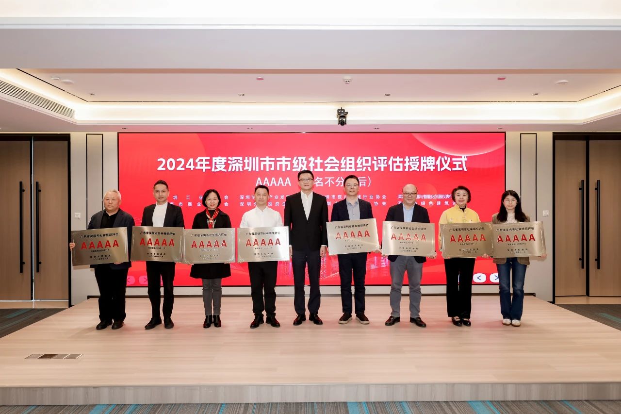 12月18日,由深圳市民政局(深圳市社會組織管理局)主辦、深圳市社會組織總會承辦的“2024年度深圳市市級社會組織評估授牌儀式”在深科技城C座隆重舉行。深圳市民政局執(zhí)法監(jiān)督處處長戢煥兵、副處長鄭培偉,深圳市社會組織總會執(zhí)行會長蘇建東出席會議并為社會組織授牌。深圳市綠色建筑協(xié)會會長剪愛森參加授牌儀式,代表協(xié)會上臺領(lǐng)取5A級社會組織牌匾。