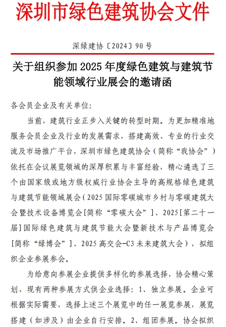 關(guān)于組織參加2025年度綠色建筑與建筑節(jié)能領(lǐng)域行業(yè)展會(huì)的邀請(qǐng)函