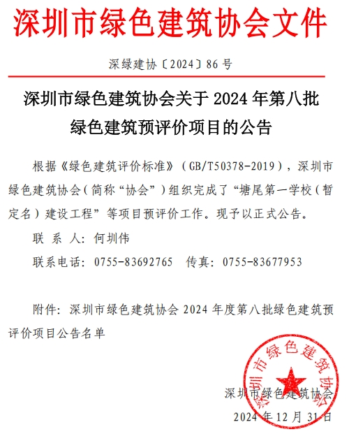 深圳市綠色建筑協(xié)會關(guān)于2024年第八批綠色建筑預(yù)評價項目的公告