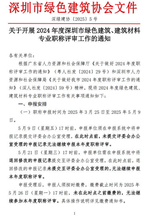 關(guān)于開展2024年度深圳市綠色建筑、建筑材料專業(yè)職稱評審工作的通知