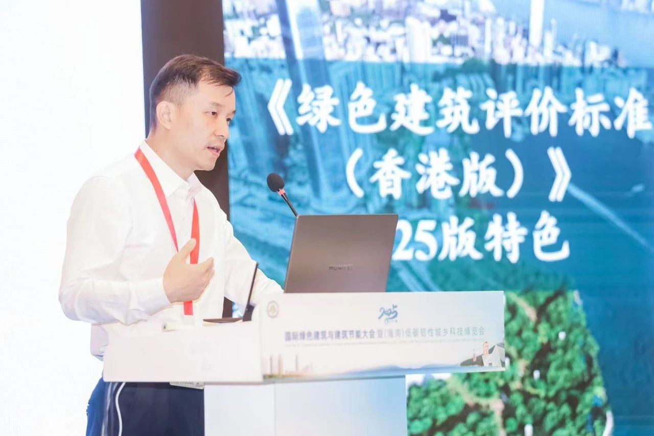 中國綠色建筑與碳中和(香港)委員會嚴(yán)汝洲聯(lián)席主任、賴鴻展博士則介紹了機構(gòu)的愿景與使命,分享了《綠色建筑評價標(biāo)準(zhǔn)(香港版)》2025版的具體情況。