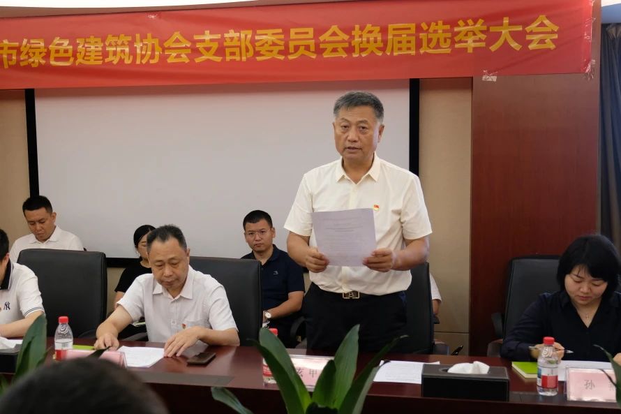 協(xié)會(huì)黨支部匯報(bào)換屆選舉前期籌備工作情況后,聯(lián)合黨委副書(shū)記兼紀(jì)委書(shū)記玄甲有宣讀《關(guān)于中共深圳市綠色建筑協(xié)會(huì)支部委員會(huì)換屆選舉請(qǐng)示的批復(fù)》