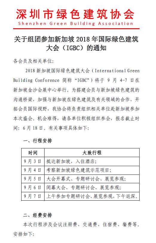 關(guān)于組團(tuán)參加新加坡2018年國際綠色建筑大會的通知