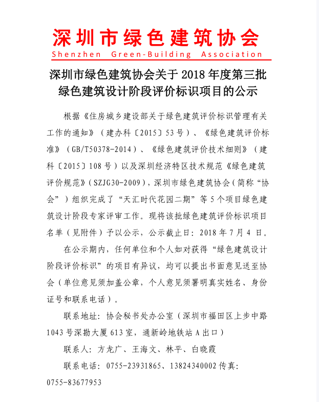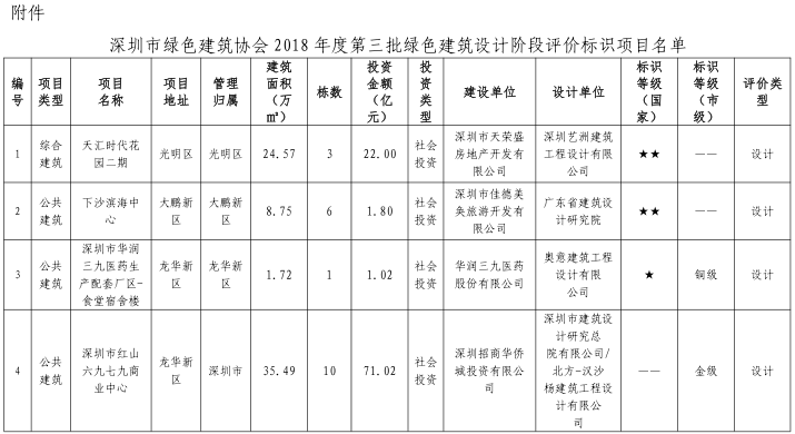關(guān)于2018年度第三批綠色建筑設(shè)計階段評價標(biāo)識項目的公示