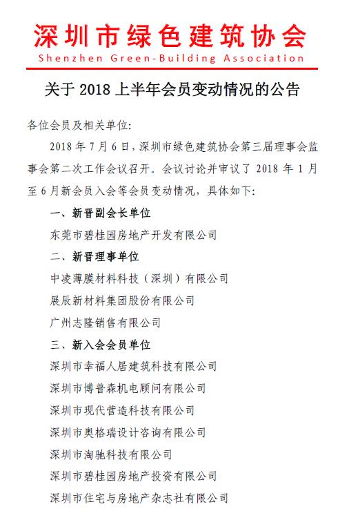 關(guān)于2018上半年會員變動情況的公告