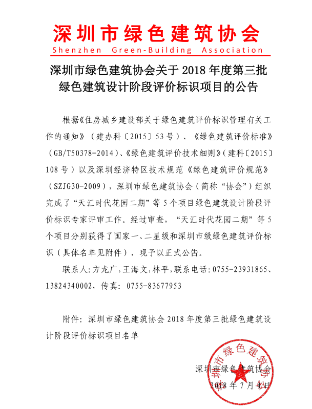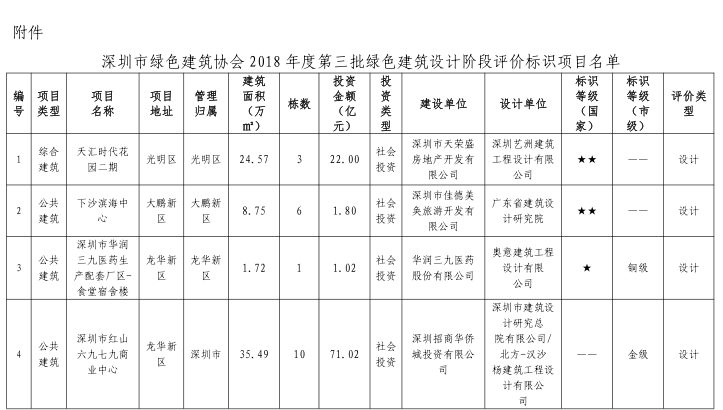 關于2018年度第三批綠色建筑設計階段評價標識項目的公告