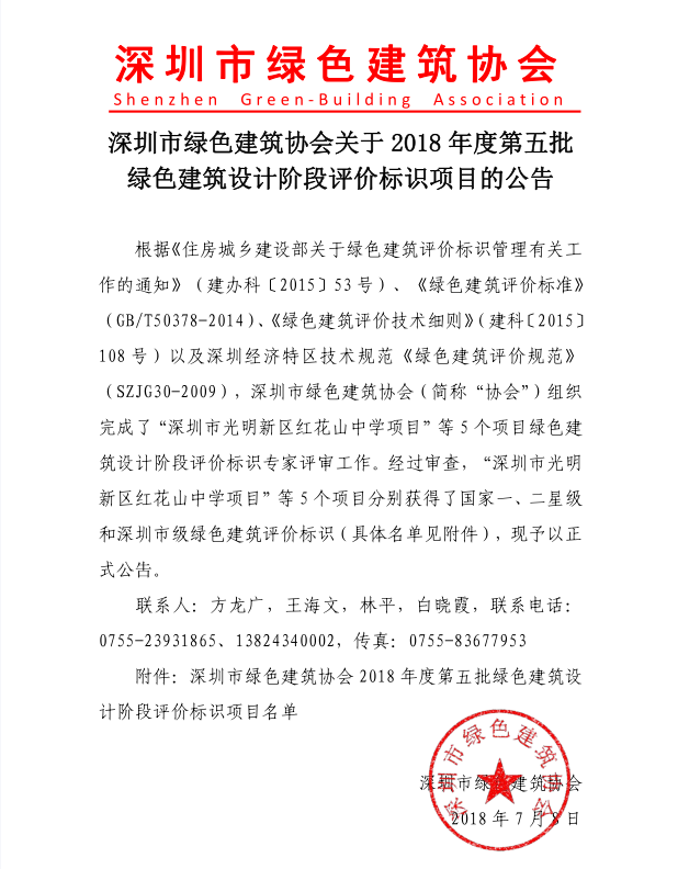 關(guān)于2018年度第五批綠色建筑設(shè)計階段評價標(biāo)識項目的公告