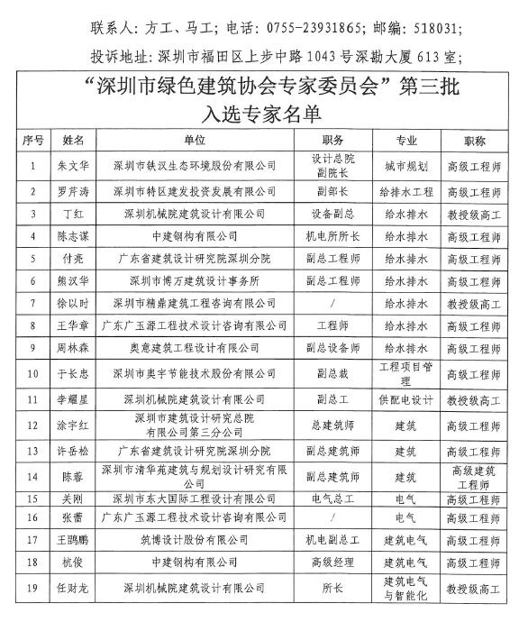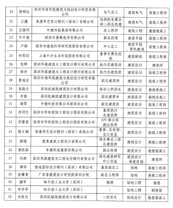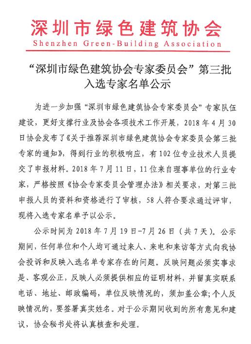 “深圳市綠色建筑協(xié)會專家委員會”第三批入選專家名單公示