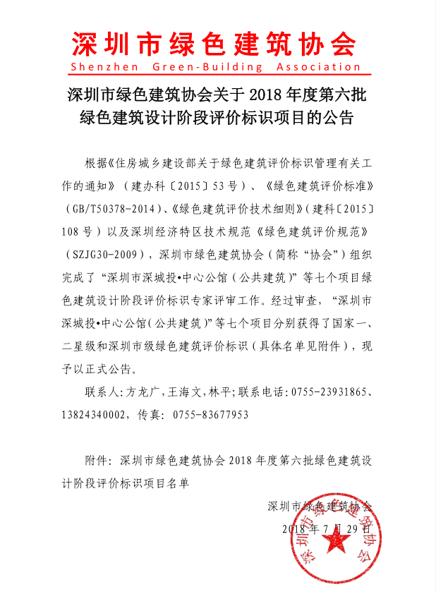 關(guān)于2018年度第六批綠色建筑設(shè)計(jì)階段評(píng)價(jià)標(biāo)識(shí)項(xiàng)目的公告