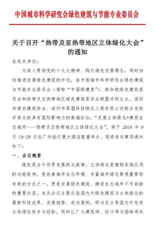 中國綠建委:關(guān)于召開"熱帶及亞熱帶地區(qū)立體綠化大會"的通知