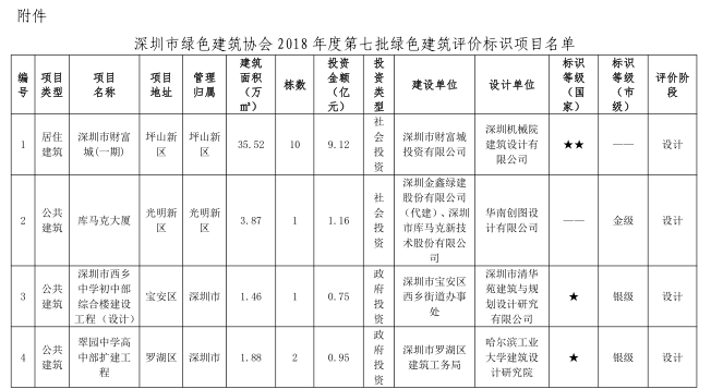 關(guān)于2018年度第七批綠色建筑評(píng)價(jià)標(biāo)識(shí)項(xiàng)目的公示
