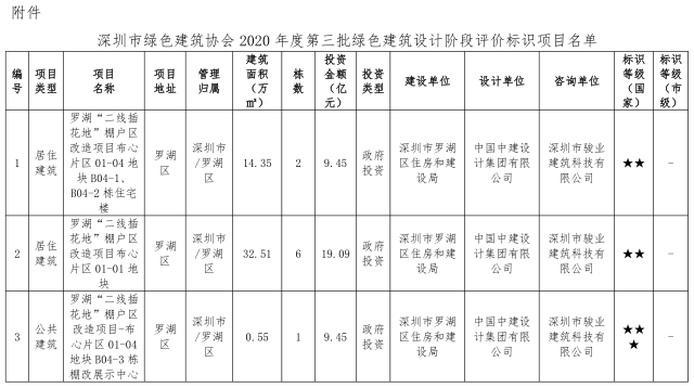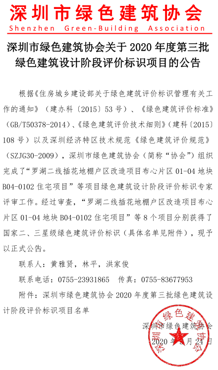 深圳市綠色建筑協(xié)會(huì)關(guān)于2020年度第三批綠色建筑評(píng)價(jià)標(biāo)識(shí)項(xiàng)目的公告