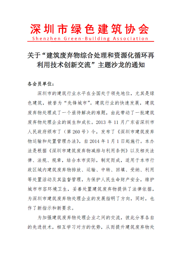 關(guān)于“建筑廢棄物綜合處理和資源化循環(huán)再利用技術(shù)創(chuàng)新交流”主題沙龍的通知