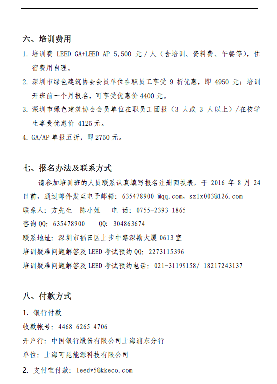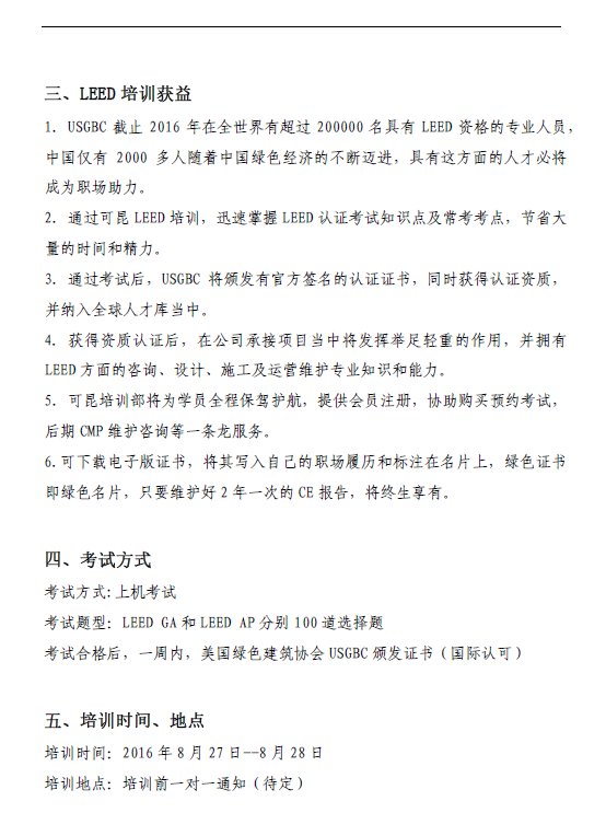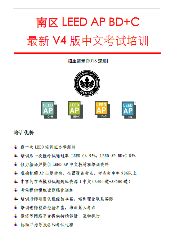 關(guān)于2016年度第二期LEED 培訓(xùn)的報(bào)名通知