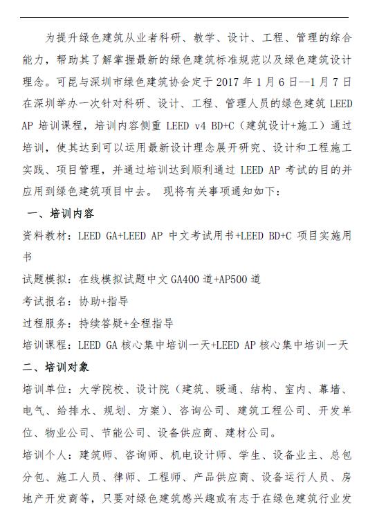 LEED 最新V4版中文考試培訓(xùn)報(bào)名通知(2017年1月6-7日)