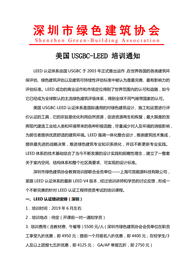 美國(guó) USGBC-LEED GA/AP認(rèn)證工程師培訓(xùn)通知