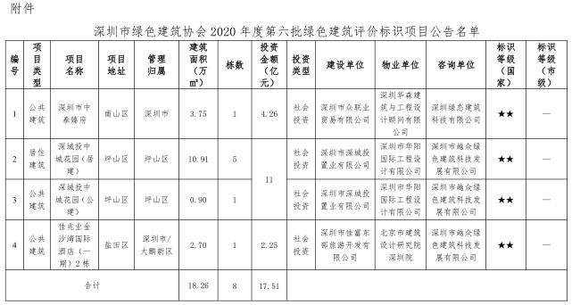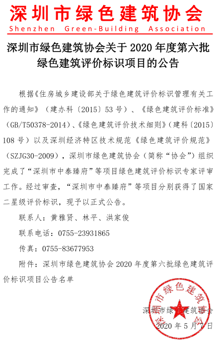 深圳市綠色建筑協(xié)會關(guān)于2020年度第六批綠色建筑評價標識項目的公告