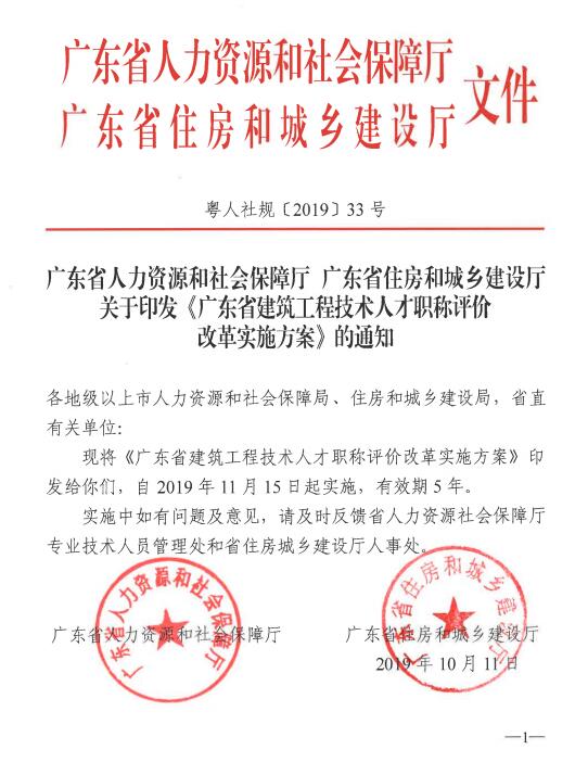 廣東省人力資源和社會保障廳 廣東省住房和城鄉(xiāng)建設廳關于印發(fā)《廣東省建筑工程技術人才職稱評價改革實施方案》的通知