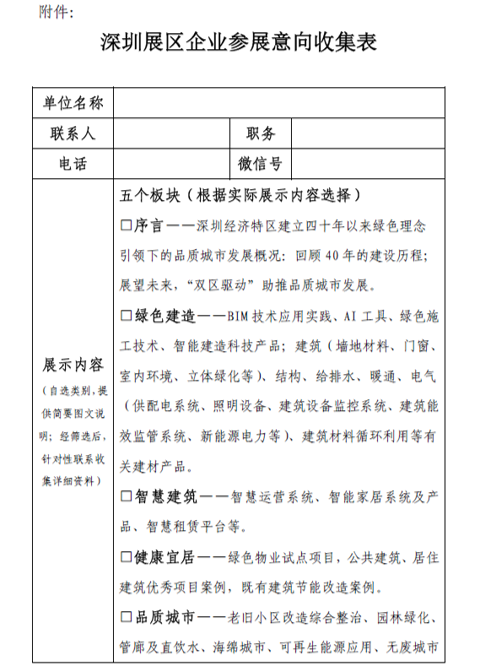 附件2:深圳展區(qū)企業(yè)參展意向收集表