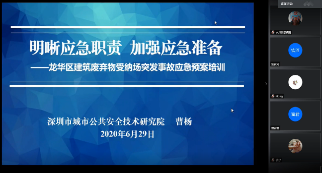 為貫徹落實《深圳市住房和建設(shè)局關(guān)于印發(fā)2020年深圳市住房建設(shè)領(lǐng)域“安全生產(chǎn)月”和“安全生產(chǎn)萬里行”活動方案的通知》,6月29日,由龍華區(qū)住房和建設(shè)局主辦、深圳市綠色建筑協(xié)會承辦的“2020年龍華區(qū)安全生產(chǎn)月活動——《龍華區(qū)建筑廢棄物受納場突發(fā)事故應(yīng)急預(yù)案》宣貫會”在線上召開。