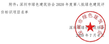 深圳市綠色建筑協(xié)會關(guān)于2020年度第八批綠色建筑評價標識項目的公示