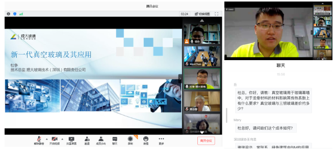 杜爭總監(jiān)帶來《新一代真空玻璃及應用》主題分享,他圍繞真空玻璃的介紹及性能、真空玻璃與被動式建筑、真空玻璃在建筑上的應用、真空玻璃的其他應用等四大板塊進行講解。他指出,真空玻璃使用壽命平均≥20年,在余下真空玻璃服役期內(nèi),仍然具備良好的節(jié)能效果。因此使用真空玻璃具有非常可觀的經(jīng)濟效益,具有很好的節(jié)能優(yōu)勢。會上,行業(yè)人員重點圍繞真空玻璃與幕墻的傳熱系數(shù)、造價成本等問題進行了深入交流。