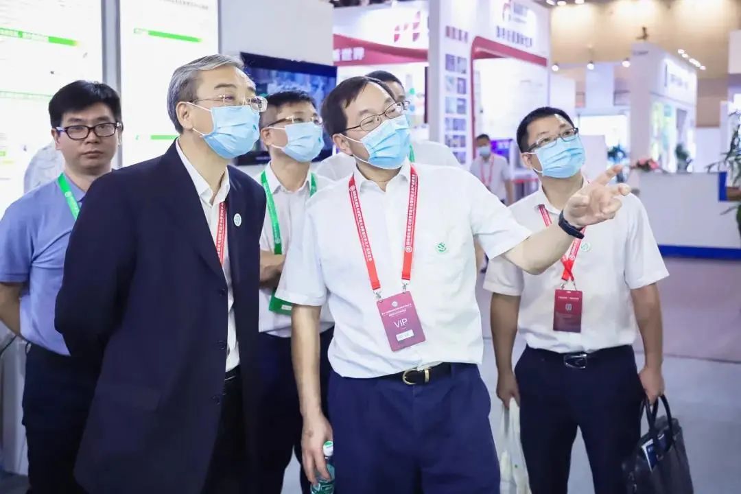 在深圳市住建局副局長高爾劍(左)的陪同下,國務(wù)院參事、住房和城鄉(xiāng)建設(shè)部原副部長、 中國城市科學(xué)研究會理事長仇保興(右)參觀深圳展區(qū)