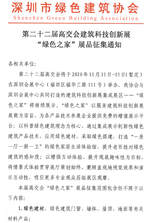 2020高交會(huì)建筑科技創(chuàng)新展“綠色之家”展品開(kāi)始征集啦!