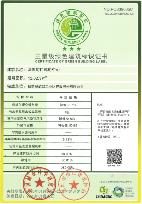日前,深圳市蛇口郵輪中心作為深圳市優(yōu)秀綠色建筑項目在蘇州綠博會上獲頒國家綠色建筑三星級認證標識牌,是全國首批、深圳首個新國標三星級認證項目。該項目創(chuàng)造了由中國城市科學研究會和地方協(xié)會共同評審項目的先例,先后通過兩輪技術(shù)與形式審查——深圳市綠色建筑協(xié)會組織的專家現(xiàn)場審查和中國城市科學研究會、深圳市綠色建筑協(xié)會聯(lián)合組織的專家評審會,最終獲得兩家機構(gòu)聯(lián)合蓋章認可。