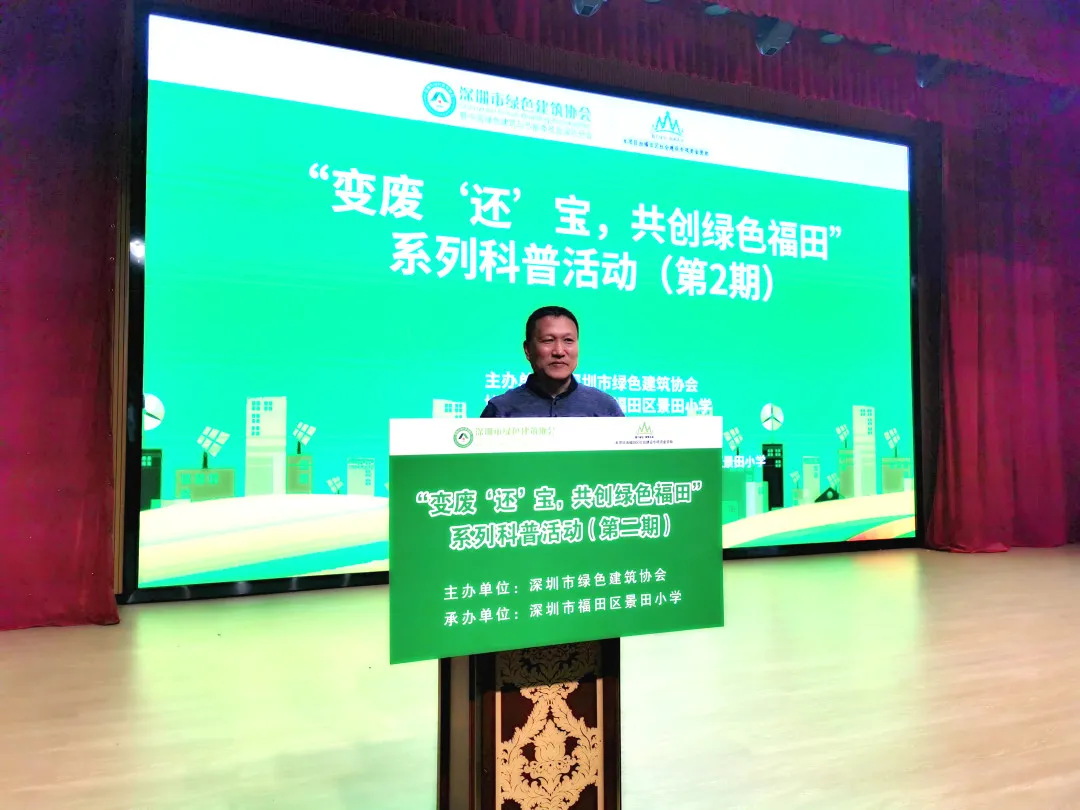 為貫徹落實《深圳經(jīng)濟(jì)特區(qū)科學(xué)技術(shù)普及條例》,宣傳綠色節(jié)能理念,在福田區(qū)社會建設(shè)專項資金的資助下,由深圳市綠色建筑協(xié)會主辦、福田區(qū)景田小學(xué)協(xié)辦的“變廢‘還’寶,共創(chuàng)綠色福田”第2期系列科普活動于9月25日在景田小學(xué)開展。本次活動圍繞綠色建筑與建筑節(jié)能、垃圾分類等內(nèi)容進(jìn)行了科普宣講,配套組織了科普知識競賽,景田小學(xué)1400余名師生參加活動。