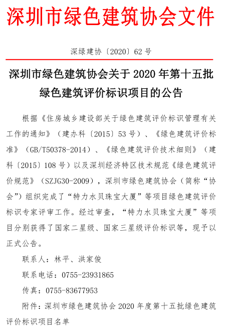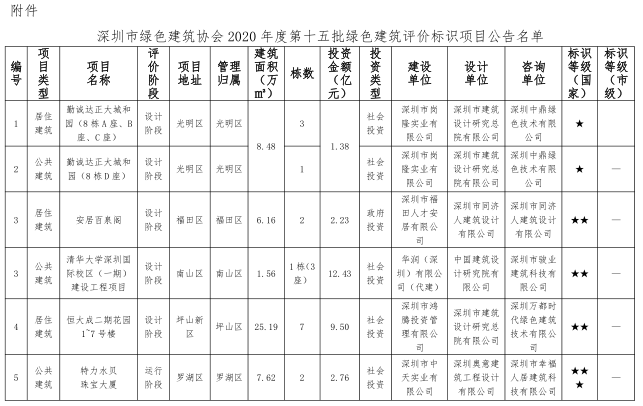 深圳市綠色建筑協(xié)會(huì)關(guān)于2020年度第十五批綠色建筑評(píng)價(jià)標(biāo)識(shí)項(xiàng)目的公告