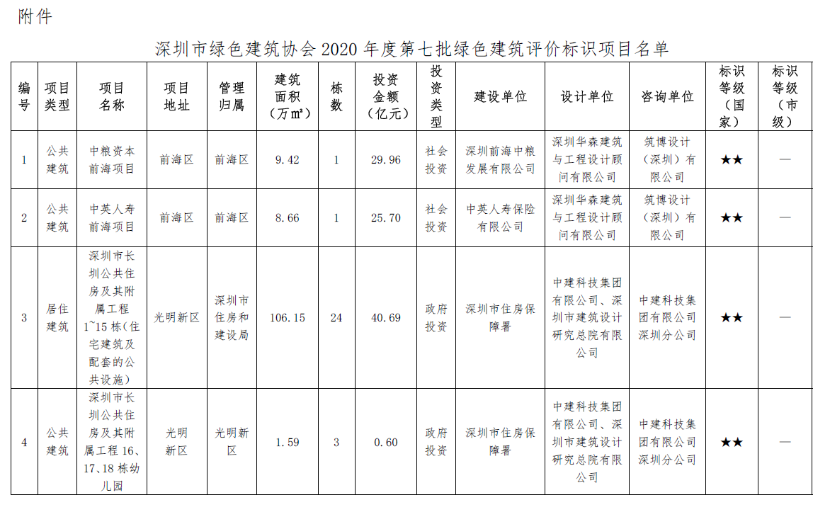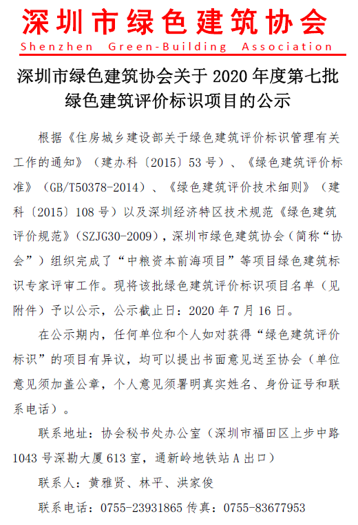 深圳市綠色建筑協(xié)會關(guān)于2020年度第七批綠色建筑設(shè)計(jì)階段評價標(biāo)識項(xiàng)目的公示