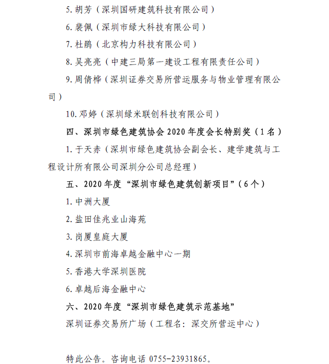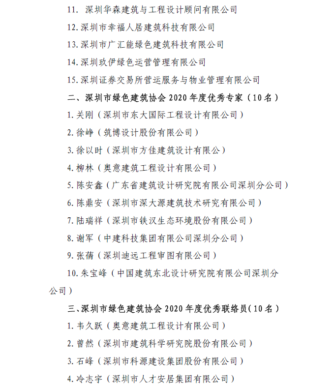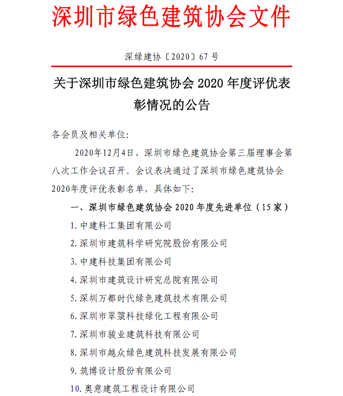 關(guān)于深圳市綠色建筑協(xié)會(huì)2020度評(píng)優(yōu)表彰情況的公告
