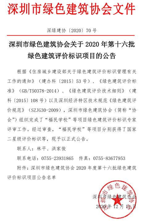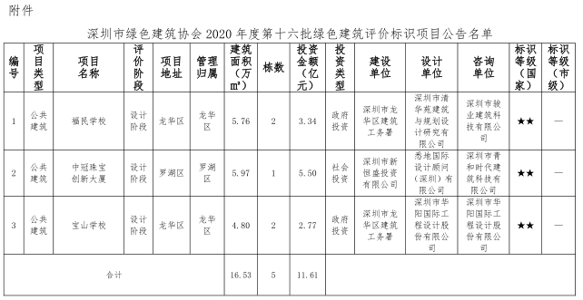 深圳市綠色建筑協(xié)會(huì)關(guān)于2020年度第十六批綠色建筑評(píng)價(jià)標(biāo)識(shí)項(xiàng)目的公告