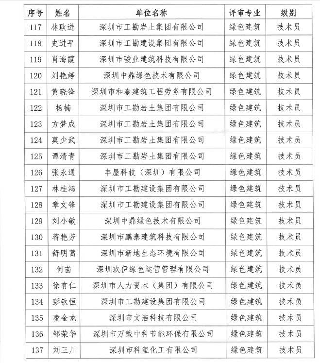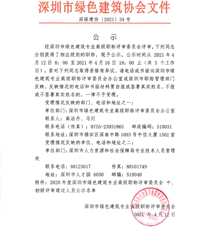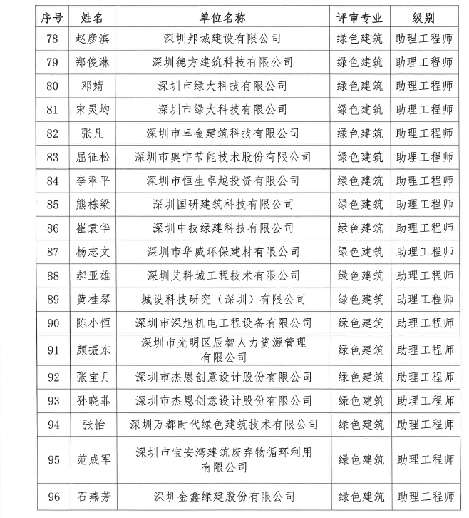 2020年度深圳市綠色建筑專業(yè)高級(jí)職稱評審委員會(huì)中、初級(jí)評審?fù)ㄟ^人員公示