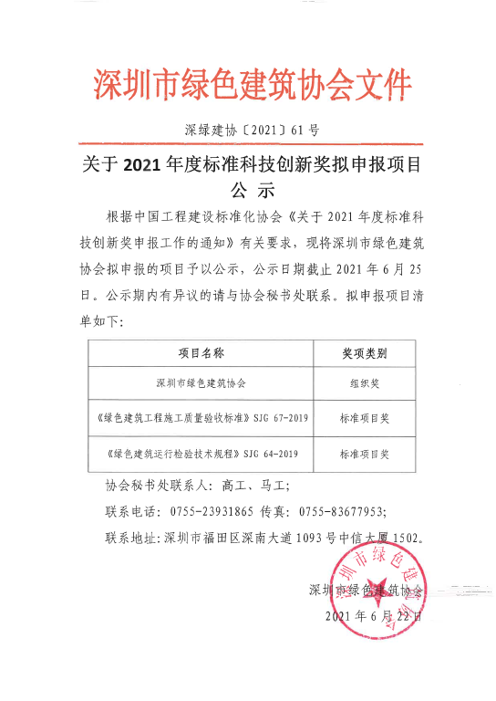 關(guān)于2021年度標(biāo)準(zhǔn)科技創(chuàng)新獎擬申報項目公示