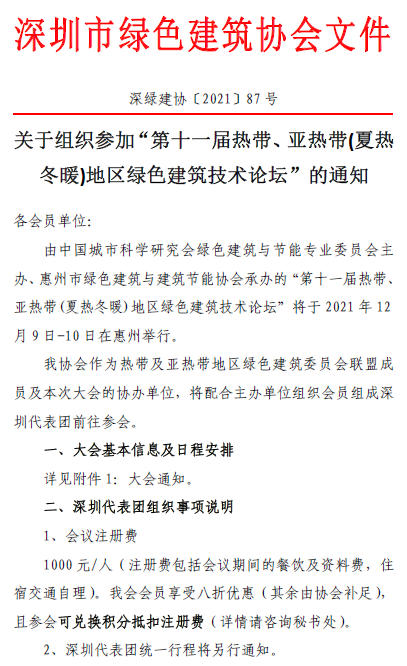 關(guān)于組織參加“第十一屆熱帶、亞熱帶(夏熱 冬暖)地區(qū)綠色建筑技術(shù)論壇”的通知