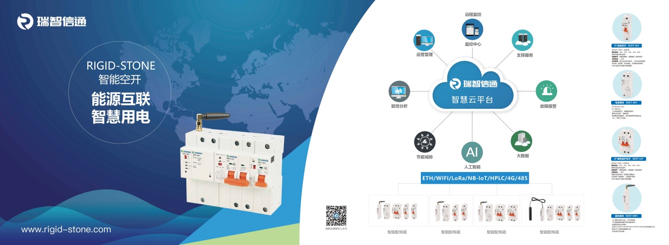 智慧空開RZXT-D01、RZXT-D02是深圳市瑞智信通科技有限公司(以下簡稱瑞智信通)自主研發(fā)的一款用于智慧用電安全監(jiān)管和電能管理的開關(guān)產(chǎn)品.產(chǎn)品具有短路、過流、過壓、欠壓、過溫保護(hù)和漏保功能,故障顯示、自檢、功率限定、計(jì)量、合閘分閘控制、開關(guān)定時(shí)、告警等功能,通過RJ45有線和WIFI、NB-IOT、LoRa、HPLC、4G、485多種通訊方式與監(jiān)控主站通訊,在監(jiān)控主站進(jìn)行統(tǒng)一數(shù)據(jù)查詢、管理控制,為用電安全監(jiān)管提供科學(xué)的決策依據(jù),達(dá)到智慧用電管理的目的。