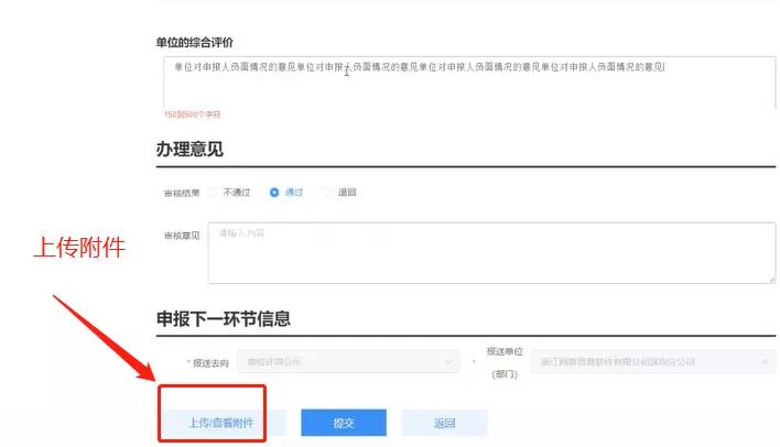 五、點擊“單位審核-審核”,查看申報人材料拉到最下面,填寫單位審核意見: