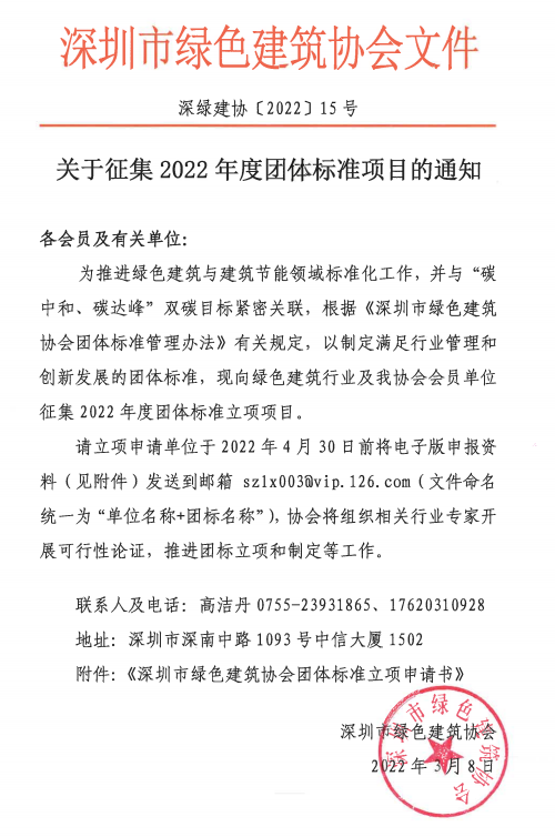 關(guān)于征集2022年度團(tuán)體標(biāo)準(zhǔn)項(xiàng)目的通知