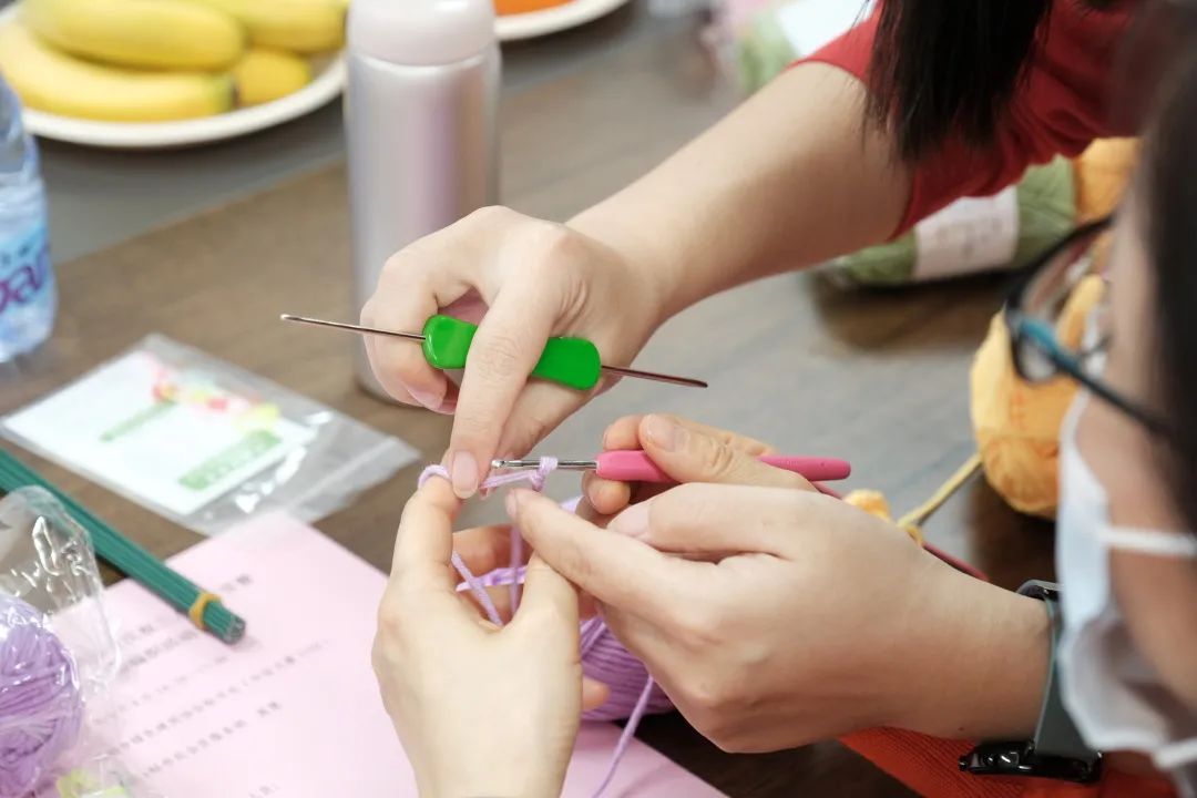 編織是人類最古老的手工藝之一,一針一線可織出無限可能。近年來,編織愛好者呈逐年上升趨勢,受到廣大女性的喜愛。本次活動,協(xié)會邀請到編織達(dá)人祁老師進行授課。她生動地為大家講解了編織的基本原理和手法,并進行現(xiàn)場演示。