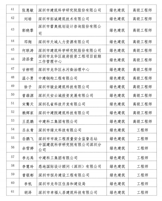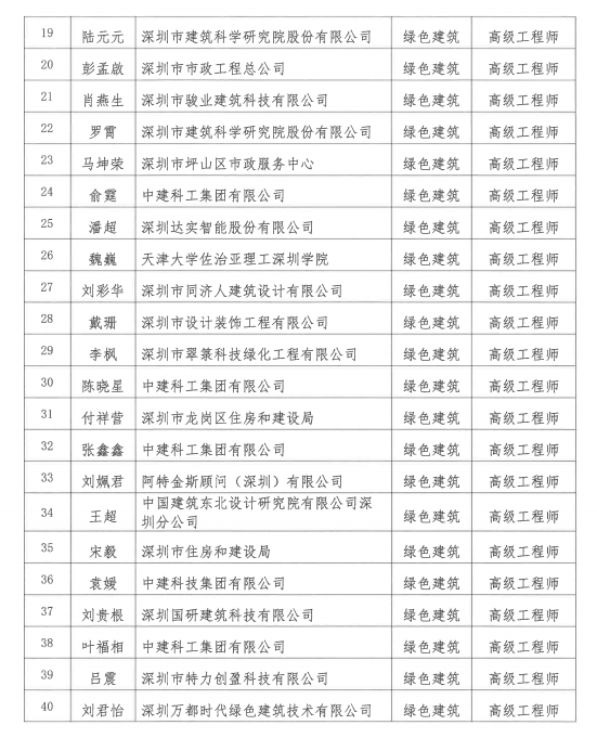 2021年度深圳市綠色建筑專業(yè)高級職稱評審委員會評審通過人員公示
