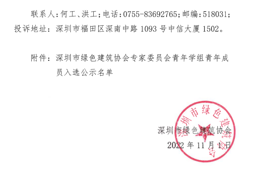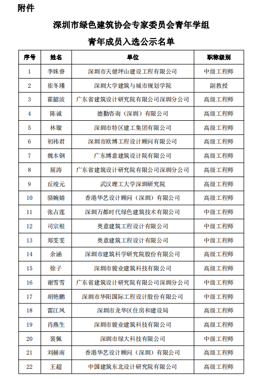 “深圳市綠色建筑協(xié)會專家委員會青年學(xué)組”青年成員入選名單公示
