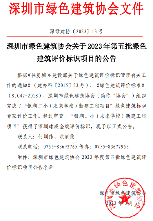 深圳市綠色建筑協(xié)會關(guān)于2023年第五批綠色建筑評價標(biāo)識項目的公告