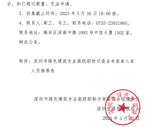 關(guān)于征集深圳市綠色建筑專業(yè)高級(jí)職稱評(píng)審委員會(huì)評(píng)委的公告