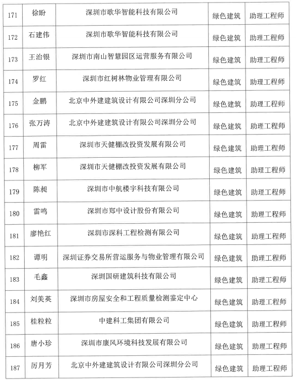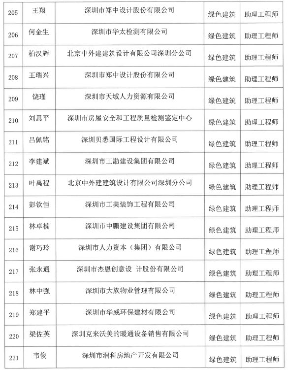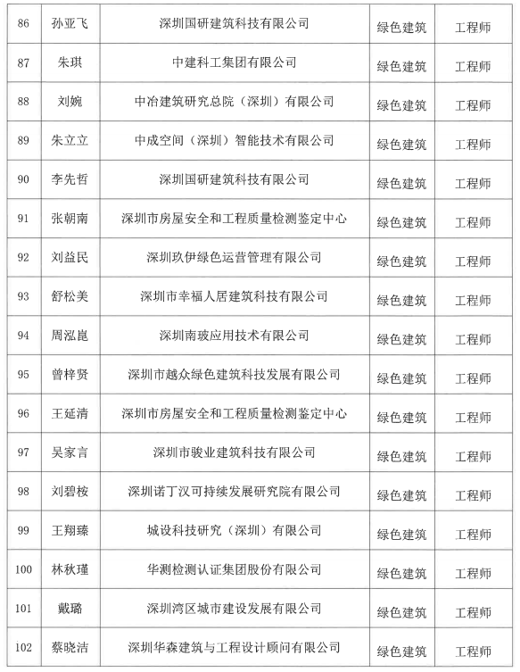 2022年度深圳市綠色建筑專業(yè)高級(jí)職稱評(píng)審委員會(huì)評(píng)審?fù)ㄟ^人員公示