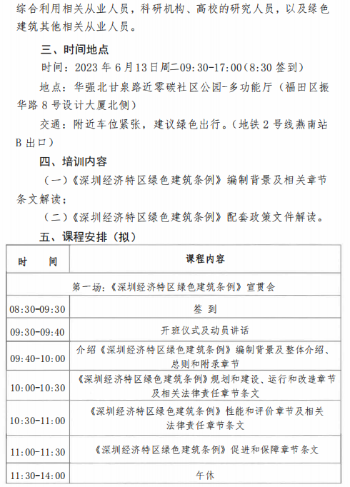 關(guān)于開(kāi)展“2023年深圳經(jīng)濟(jì)特區(qū)綠色建筑條例、政策宣貫培訓(xùn)”的通知