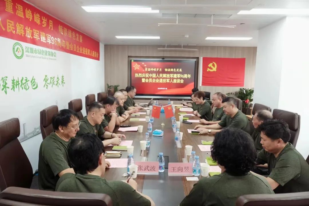 強國征程,波瀾壯闊。2023年8月1日下午,在深圳市社會組織總會聯(lián)合黨委指導(dǎo)下,深圳市綠色建筑協(xié)會黨支部、深圳市社會組織總會聯(lián)合黨總支共同舉辦“熱烈慶祝中國人民解放軍建軍96周年暨會員企業(yè)退役軍人座談會”。深圳市社會組織總會聯(lián)合黨委副書記、聯(lián)合黨總支書記張武波,市綠色建筑協(xié)會黨支部書記、秘書長王向昱,以及兩個黨支部的黨員代表和協(xié)會會員企業(yè)退役軍人代表參會,重溫崢嶸歲月,暢談綠色發(fā)展。