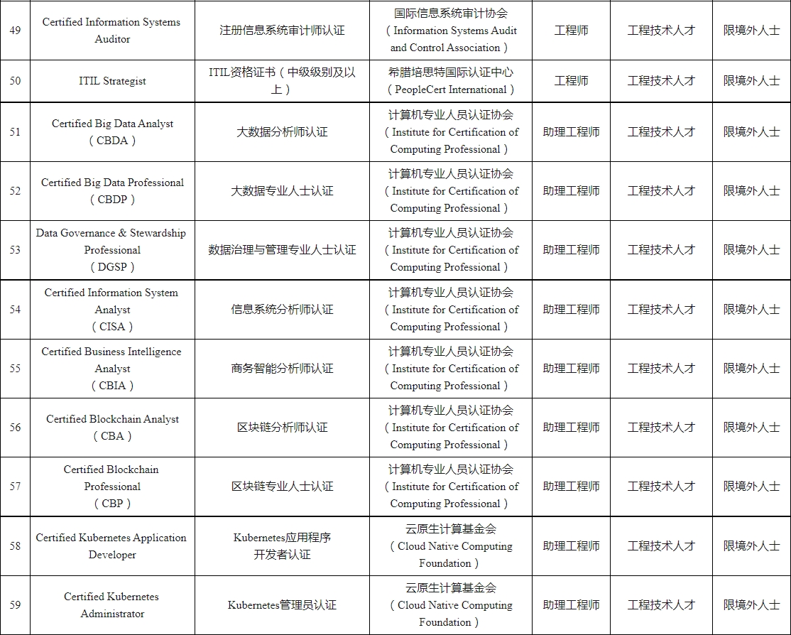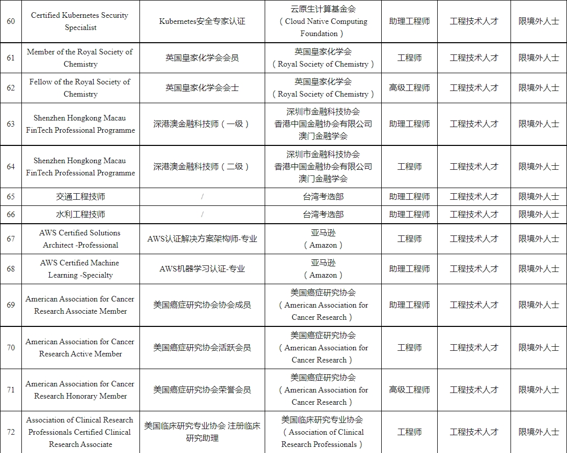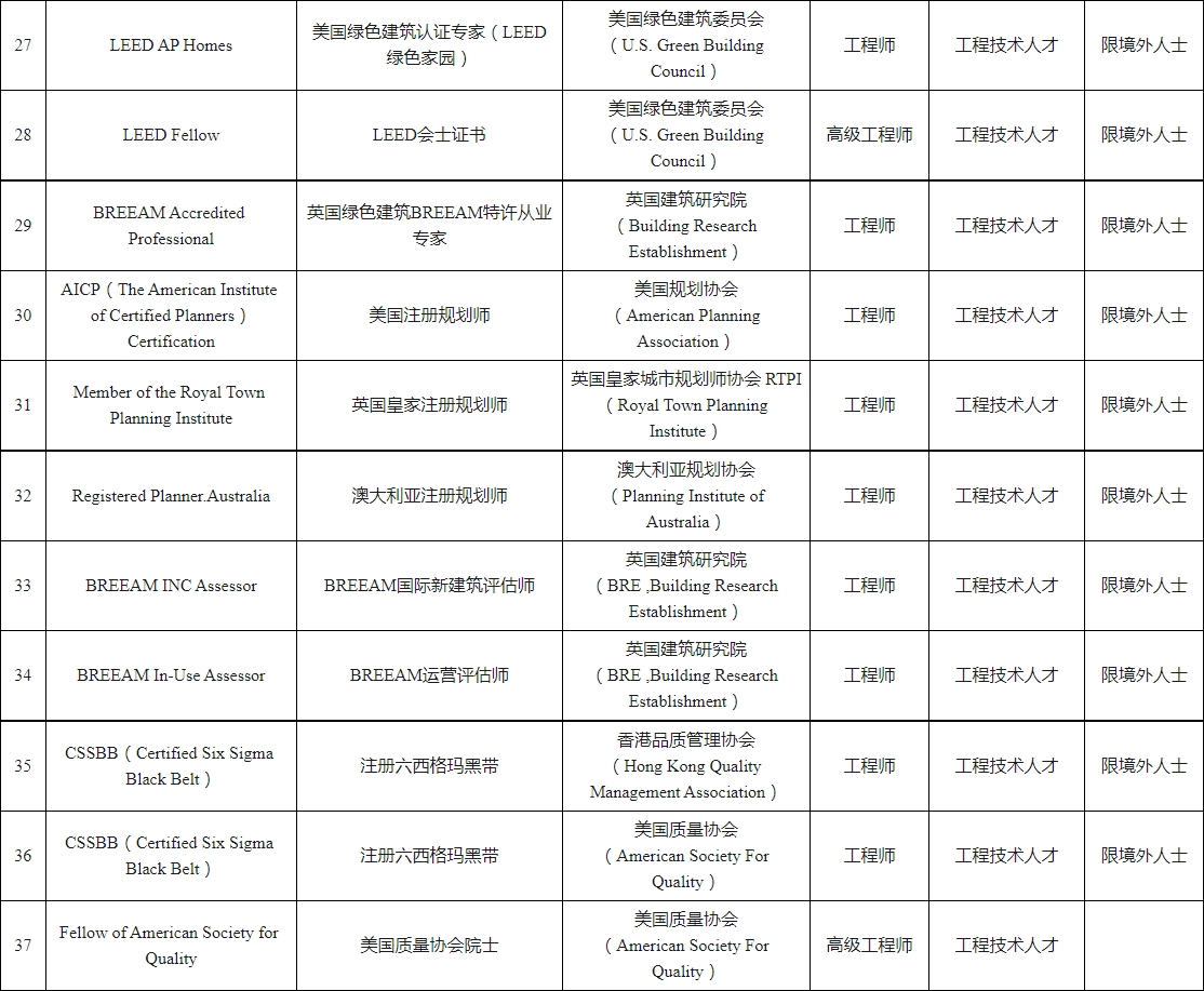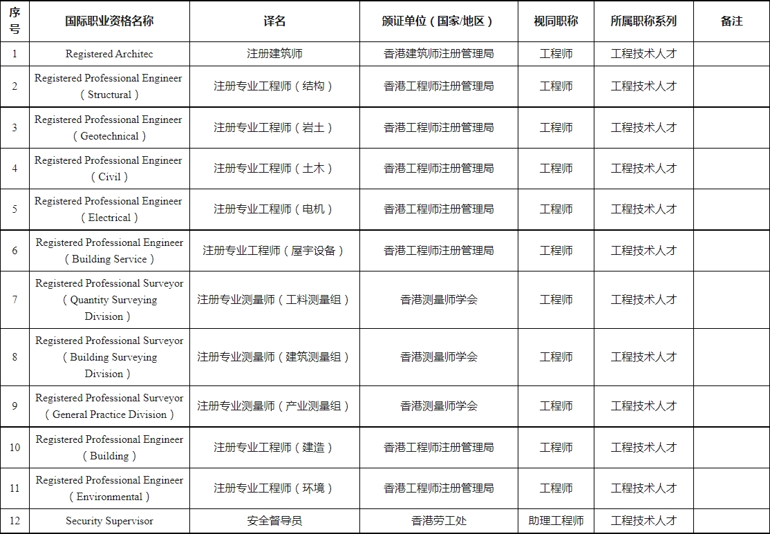 深圳市國際職業(yè)資格視同職稱認可目錄(2023年)