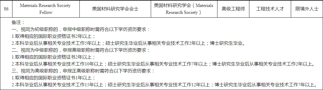持有《目錄》中國際職業(yè)資格證書且證書在有效期內(nèi)的專業(yè)人才,從事與資格證書相一致或相近的專業(yè)技術工作,且在深圳工作一年以上的,可按規(guī)定條件申報評審高一層級的職稱,其境外從業(yè)經(jīng)歷可視同境內(nèi)從業(yè)經(jīng)歷。視同職稱不再另行換發(fā)職稱證書,僅用于申報高一層級職稱評審,具體申報要求以我市2023年度職稱申報通知為準。